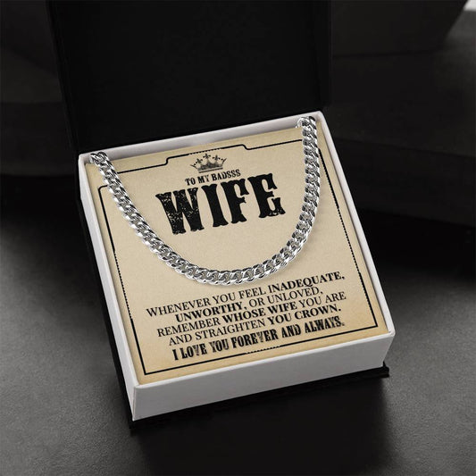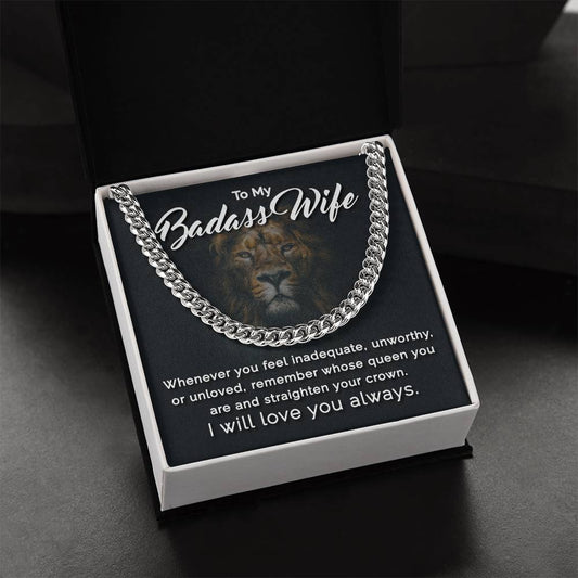 To My Badass Wife - Remember Whose Queen You Are - Cuban Link Chain Necklace