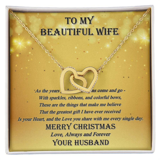 To My Beautiful Wife - Always And Forever - Interlocking Hearts - Merry Christmas Interlocking Hearts Necklace