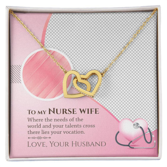 To My Nurse Wife - Where The Needs Of The World And Your Talents Cross There Lies Your Vacation - Interlocking Heart Necklace Interlocking Hearts Necklace