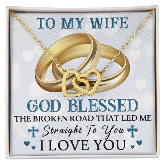 To My Wife - God Blessed - Double Hearts Interlocking Hearts Necklace