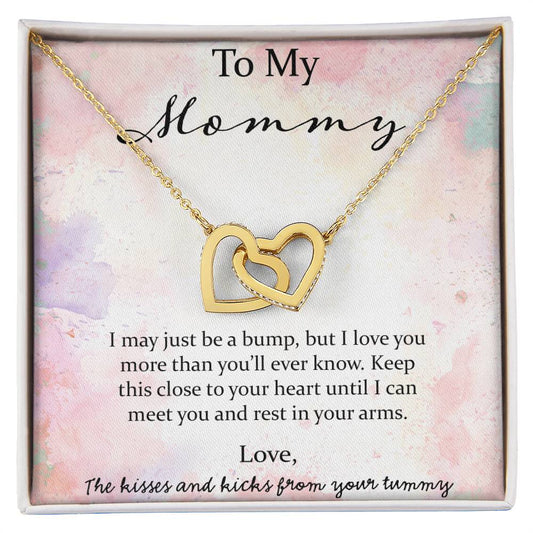 To My Mommy I May Just Be A Bump - Pink Interlocking Hearts Necklace