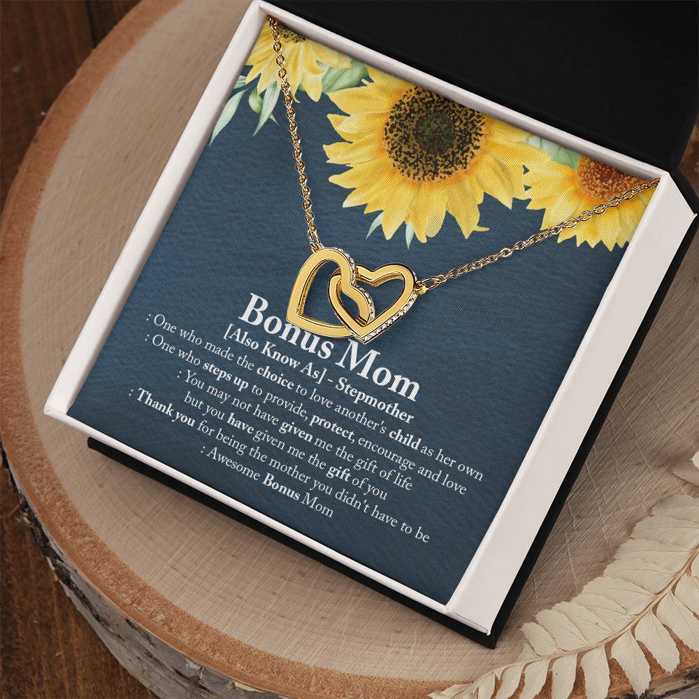 Awesome Bonus Mom - Interlocking Heart Necklace Interlocking Hearts Necklace