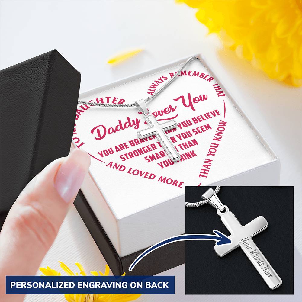 Birthday Gift - Gift For Daughter - Heart Jewelry - To My Daughter - Birthday Present - Customize Engraved Cross Necklace