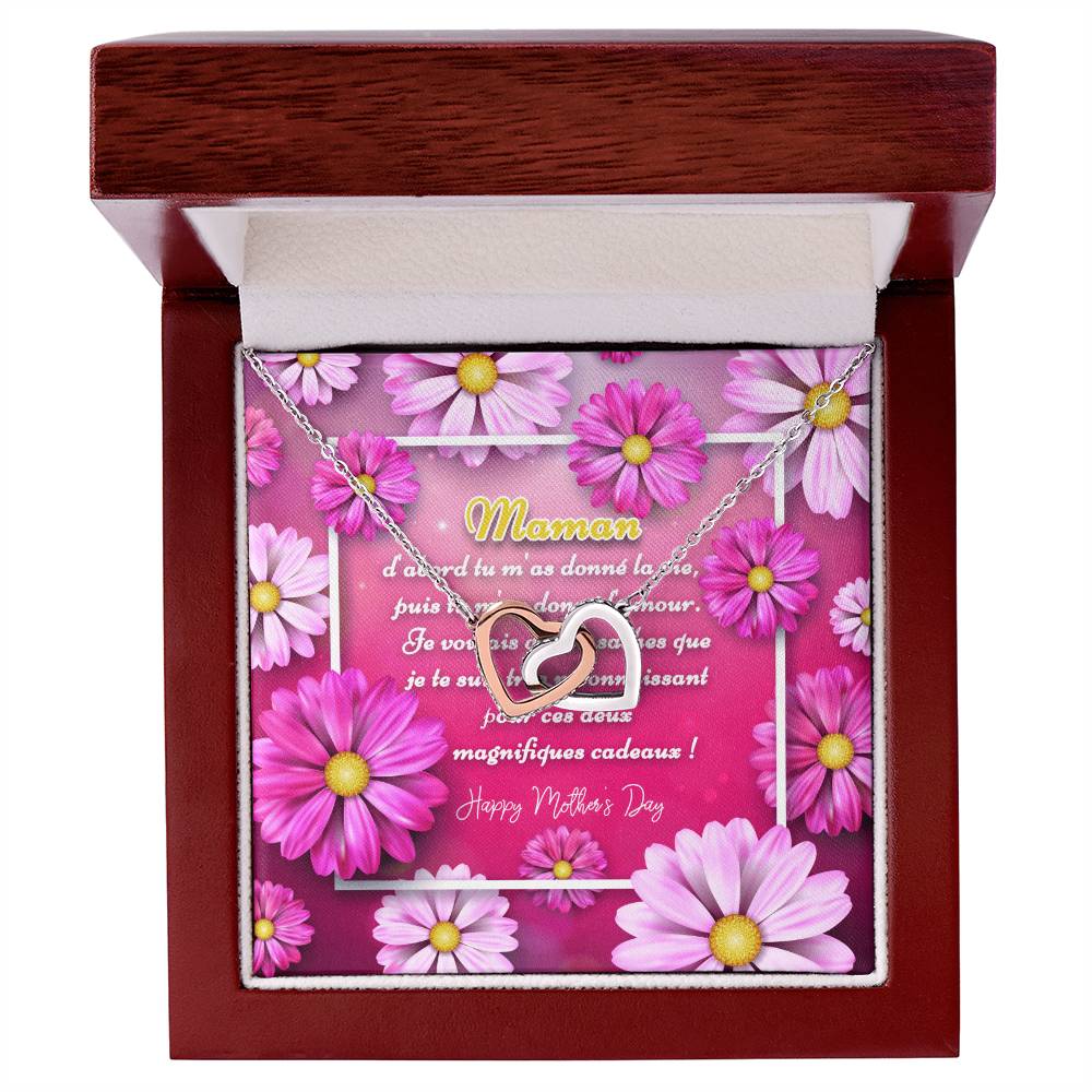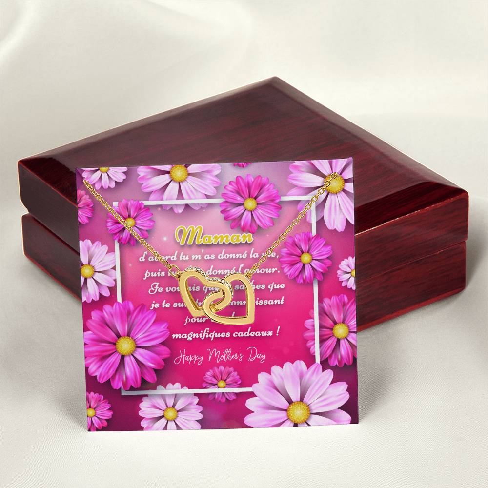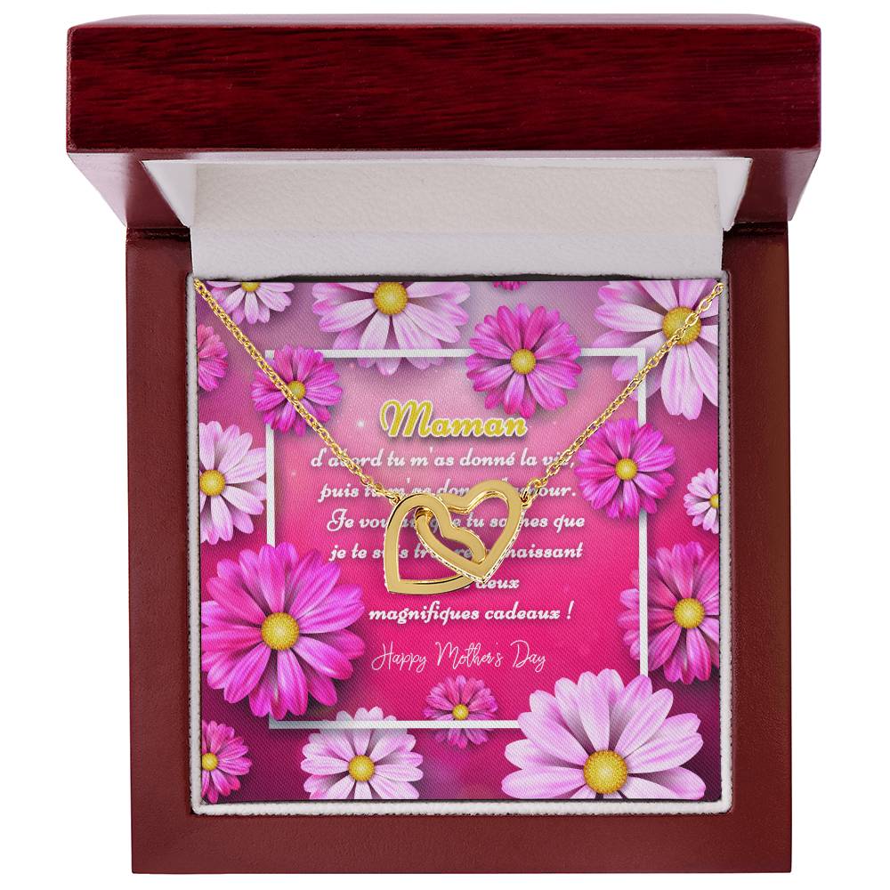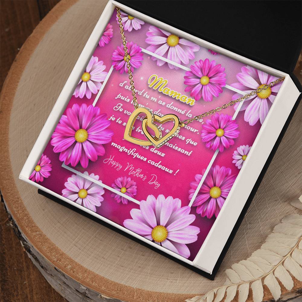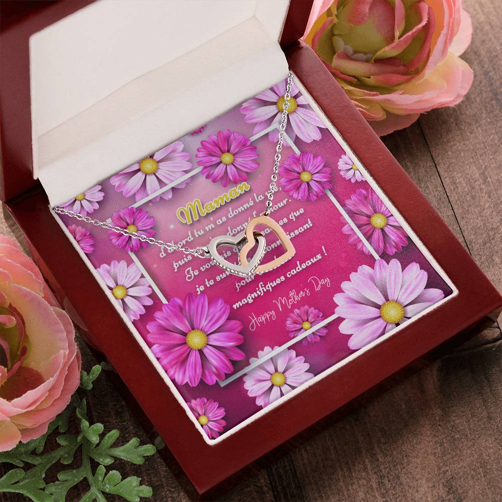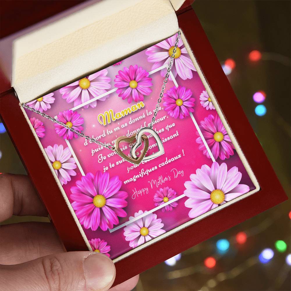 Collier Deux Cœurs Cadeau Pour Fête Des Mères Je T'Aime Maman Interlocking Hearts Necklace