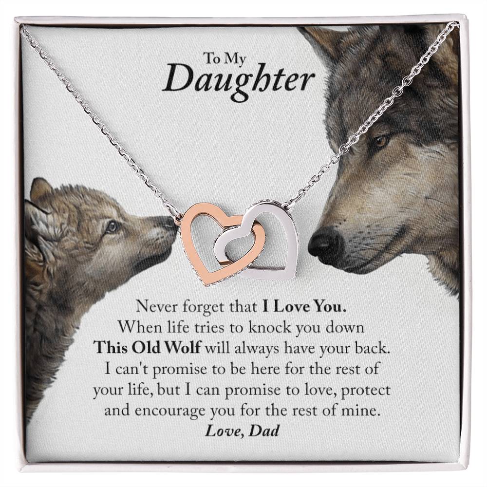 Daughter - This Old Wolf Will Always Have Your Back In Usa Interlocking Hearts Necklace