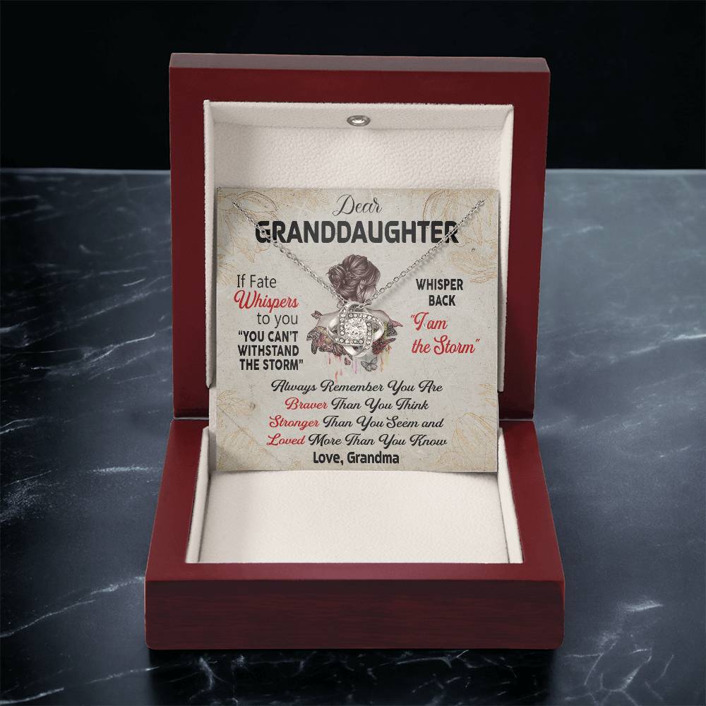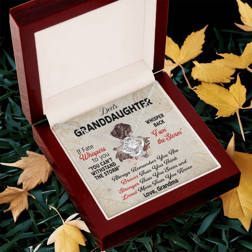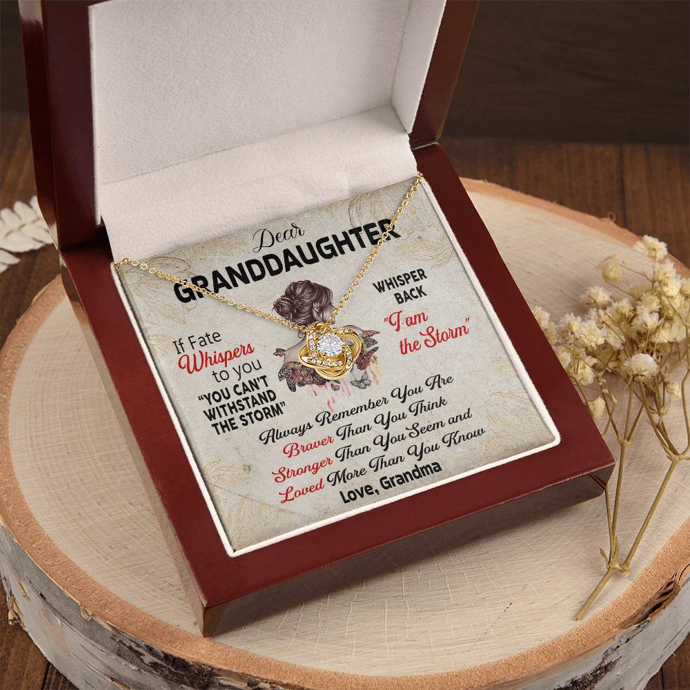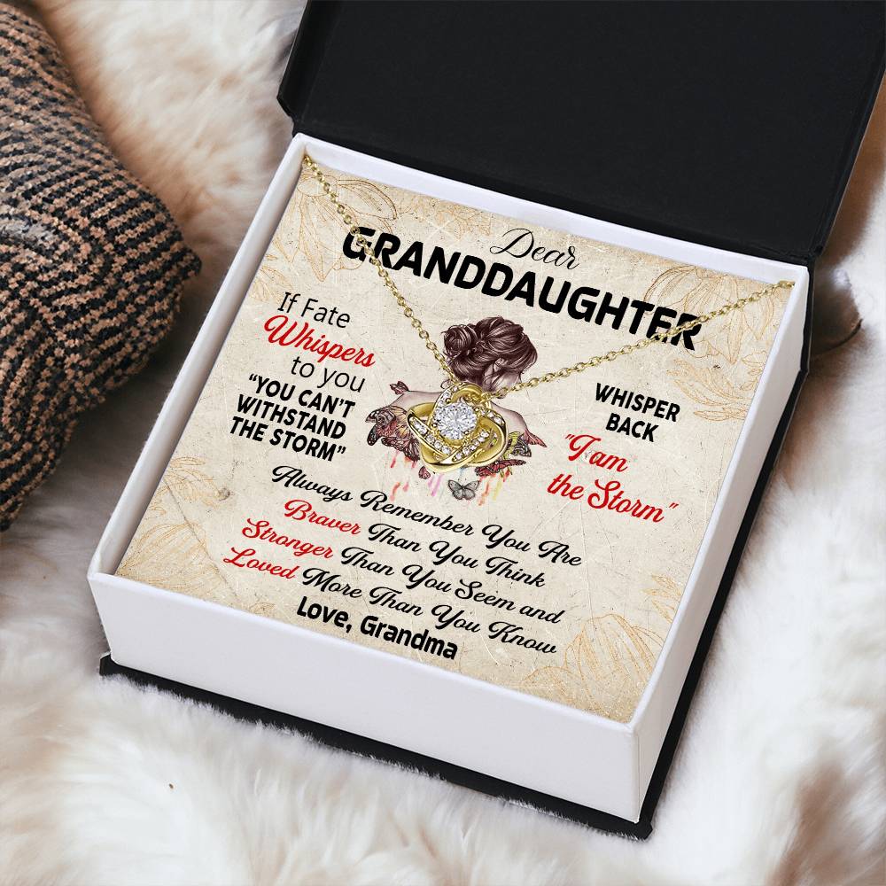 Dear Granddaughter - Whisper Back I Am The Storm Love Grandma - Braver Stronger Loved Love Knot Necklace