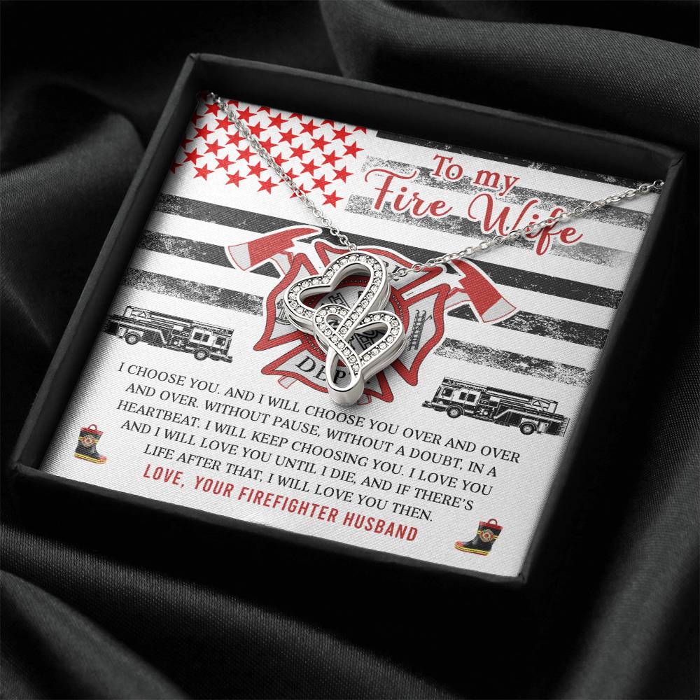 Double Heart Necklace - Best Necklace For Firefighter Wife - Romantic Gift For Fire Wife Double Hearts Necklace