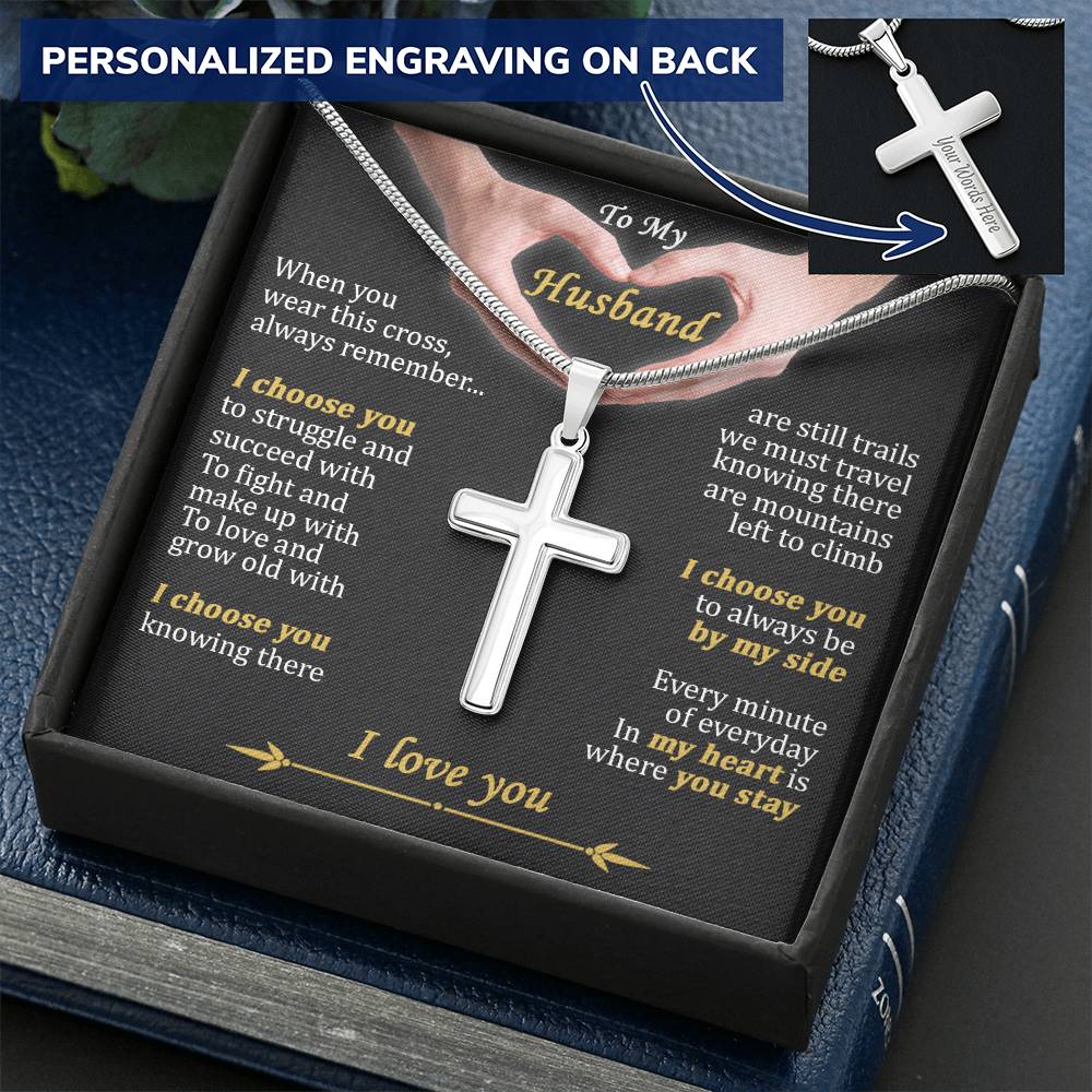 For Husband - My Heart Is Where You Stay - Cross Customize Engraved Cross Necklace