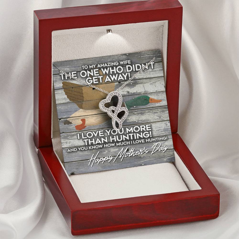 Funny Mothers Day Gift For The Wife Of A Duck Hunter I Love You More Than Duck Hunting Mother's Day Gift For Wife Husb Double Hearts Necklace