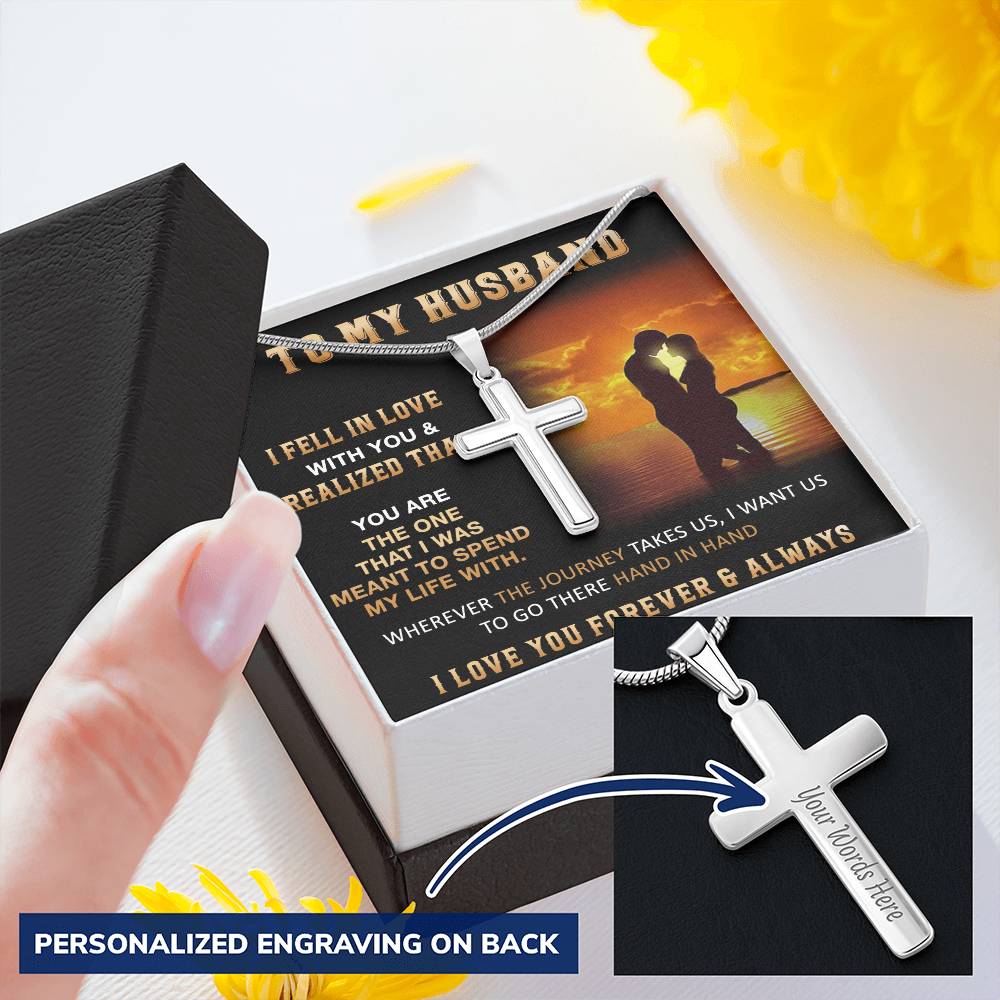 Gift For Husband - In Love - Cross Customize Engraved Cross Necklace