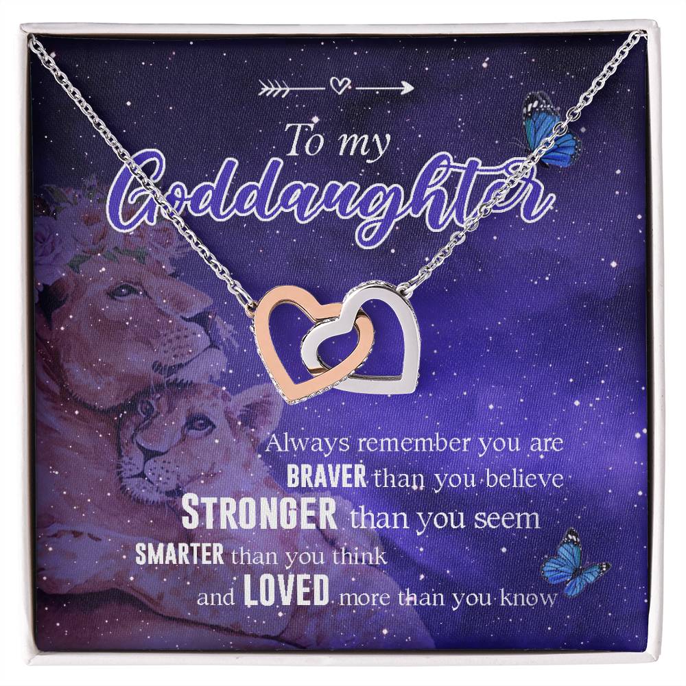 Godmother Goddaughter Gift Necklace Emotional Message Card Cute Lion Interlocking Hearts Necklace