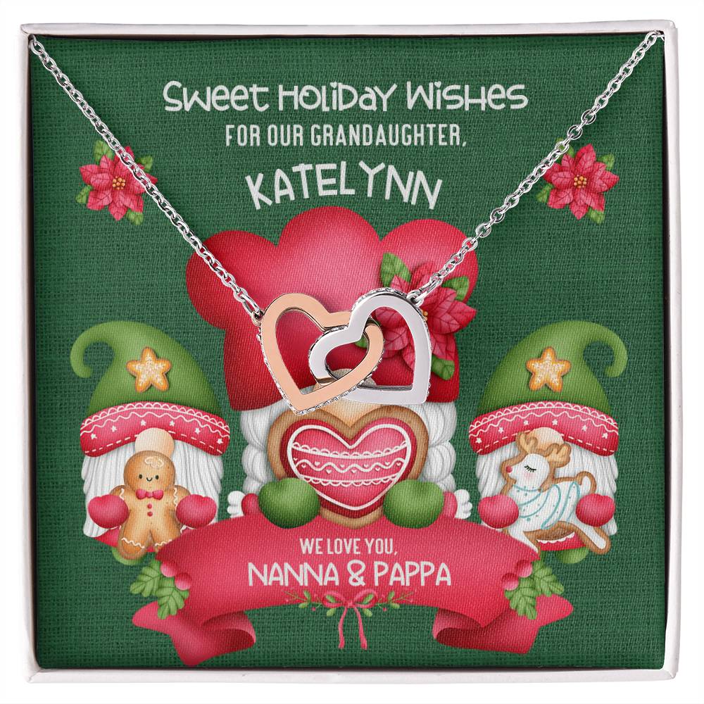 Grandparent To Granddaughter - Sweet Holiday Wishes Fully Customizable Christmas Gift - Personalized Interlocking Hearts Necklace