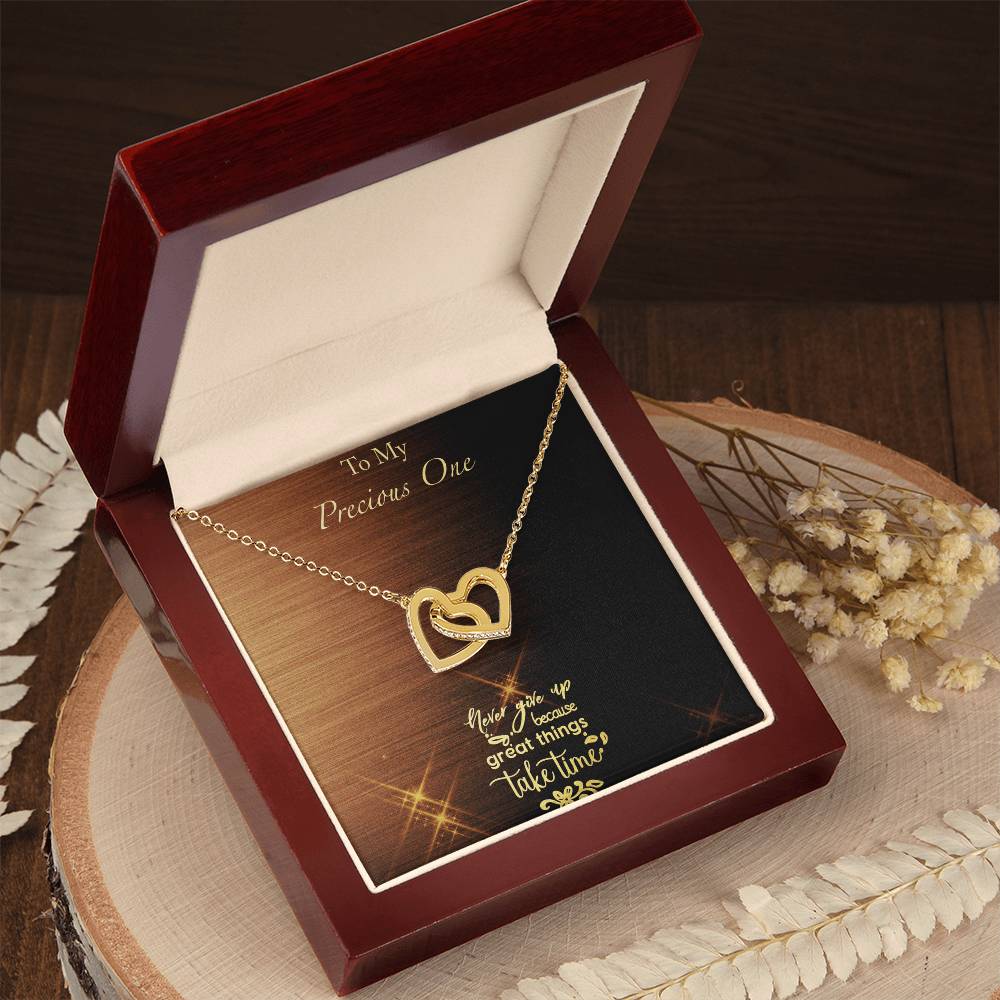 Great Things Take Time - Brushed Background Interlocking Hearts Necklace