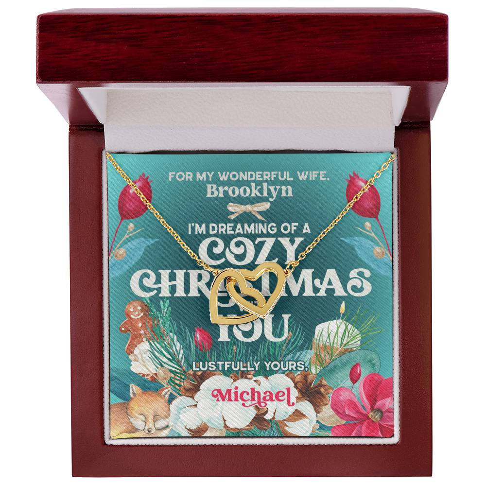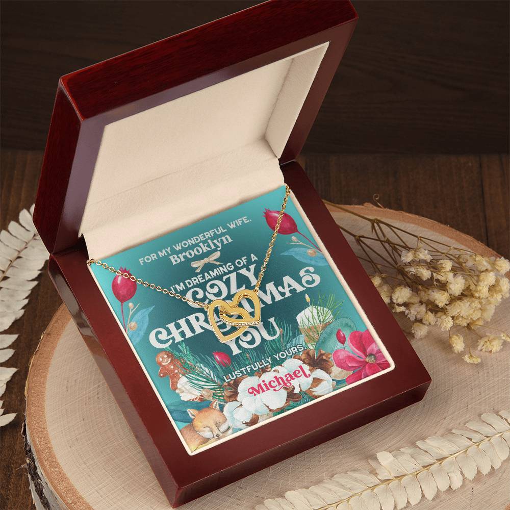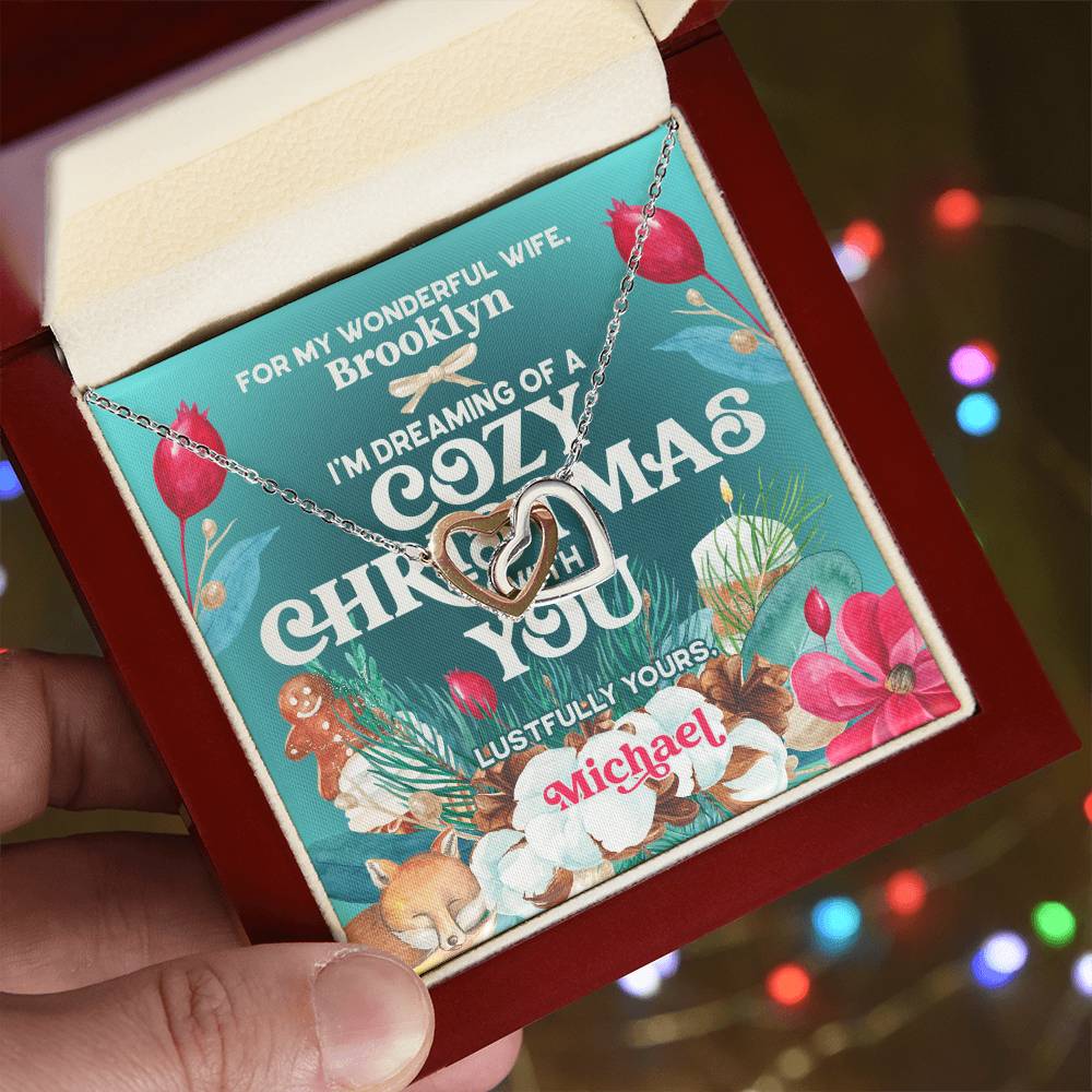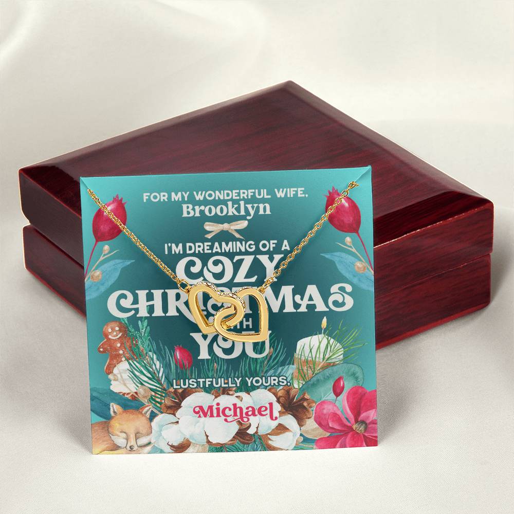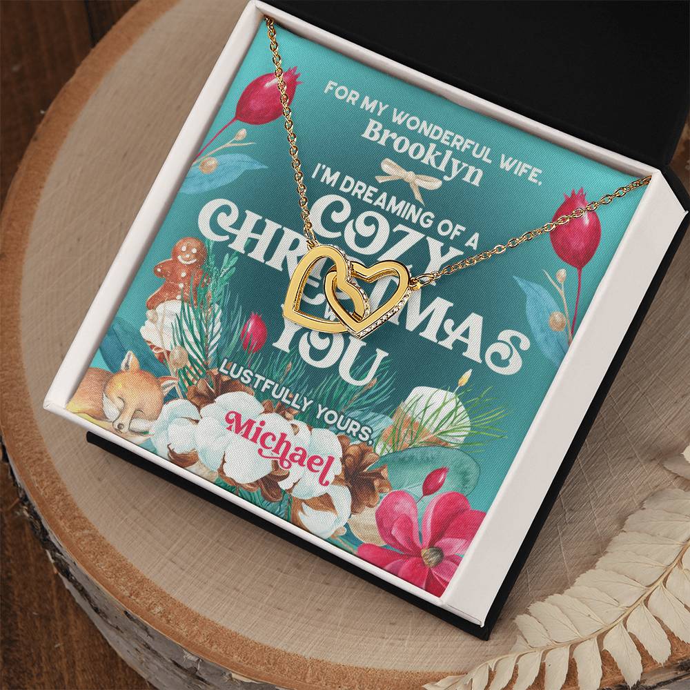 Husband To Wife - I'M Dreaming Of A Cozy Christmas You - Customizable Christmas Gift Interlocking Hearts Necklace