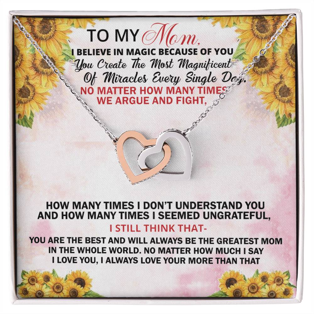 Give her the gift that symbolizes your never-ending love. Featuring two lovely hearts embellished with cubic zirconia crystals, this Interlocking Hearts necklace is the perfect accessory for everyday wear. Whether it's a memorable anniversary or a special birthday, make sure to dazzle your special someone by gifting them this stunning necklace.