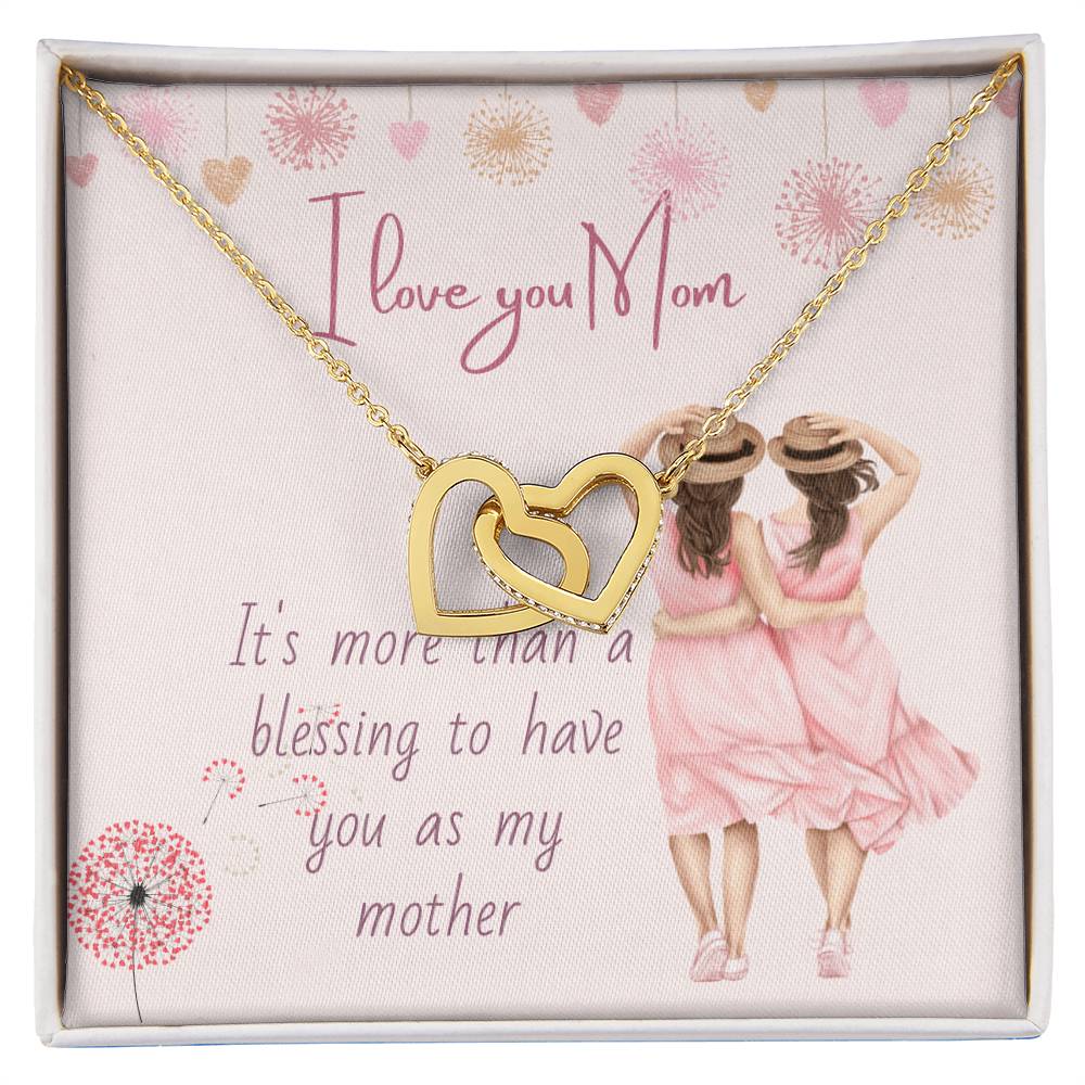 I Love You Mom Necklace Mom Necklace Mom Birthday Gift Mothers Necklace Gift Interlocking Hearts Necklace