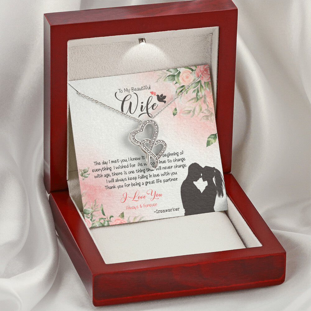 Ironworker's Wife Dazzling Pendant Double Hearts Necklace