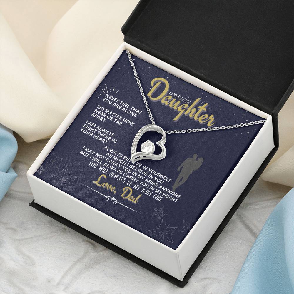 The dazzling Forever Love Necklaceis sure to make her heart melt! This necklace features a stunning 6.5mm CZ crystal surrounded by a polished heart pendant embellished with smaller crystals to add extra sparkle and shine. Beautifully crafted with either a white gold or yellow gold finish, be sure to give her a classic gift she can enjoy everyday.
