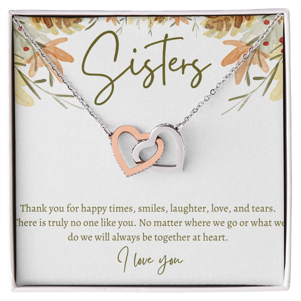 Sisters Necklace Gift For Sister Birthday Gift Sister Jewelry Big Sister Jewelry Little Sister Thoughtful Gift Message Card Interlocking Hearts Necklace