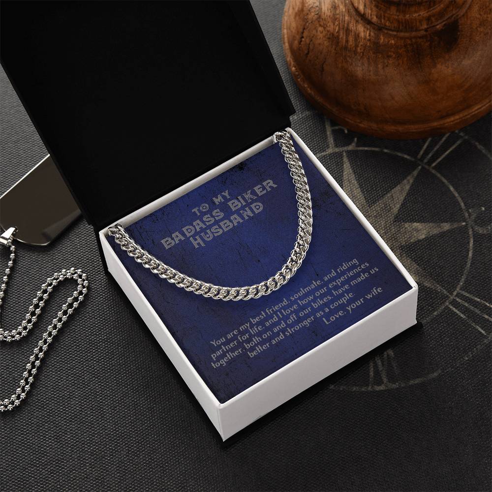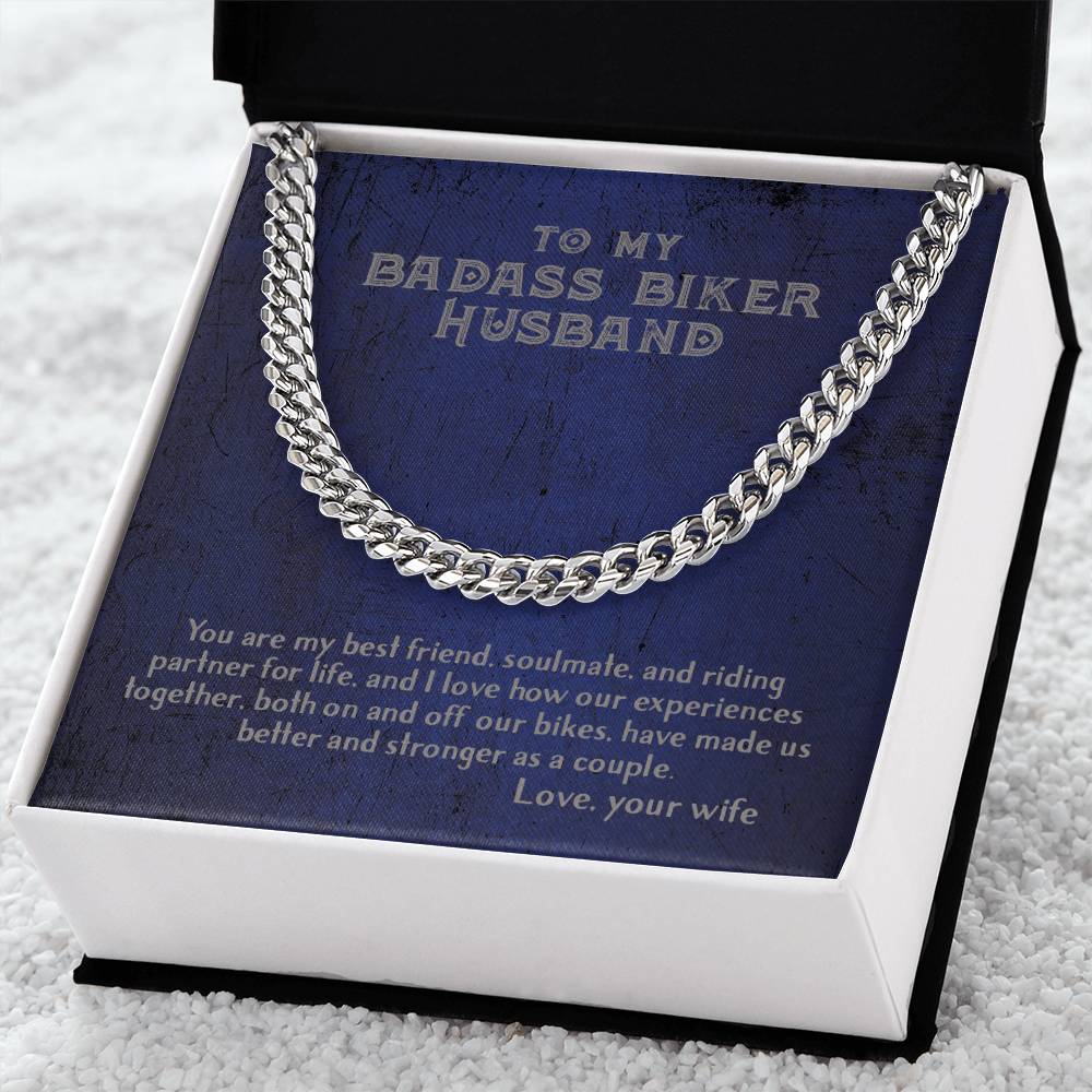 To My Badass Biker Husband From Wife - Cuban Link Chain Necklace For Biker Motorcycle Couple Gift For Him