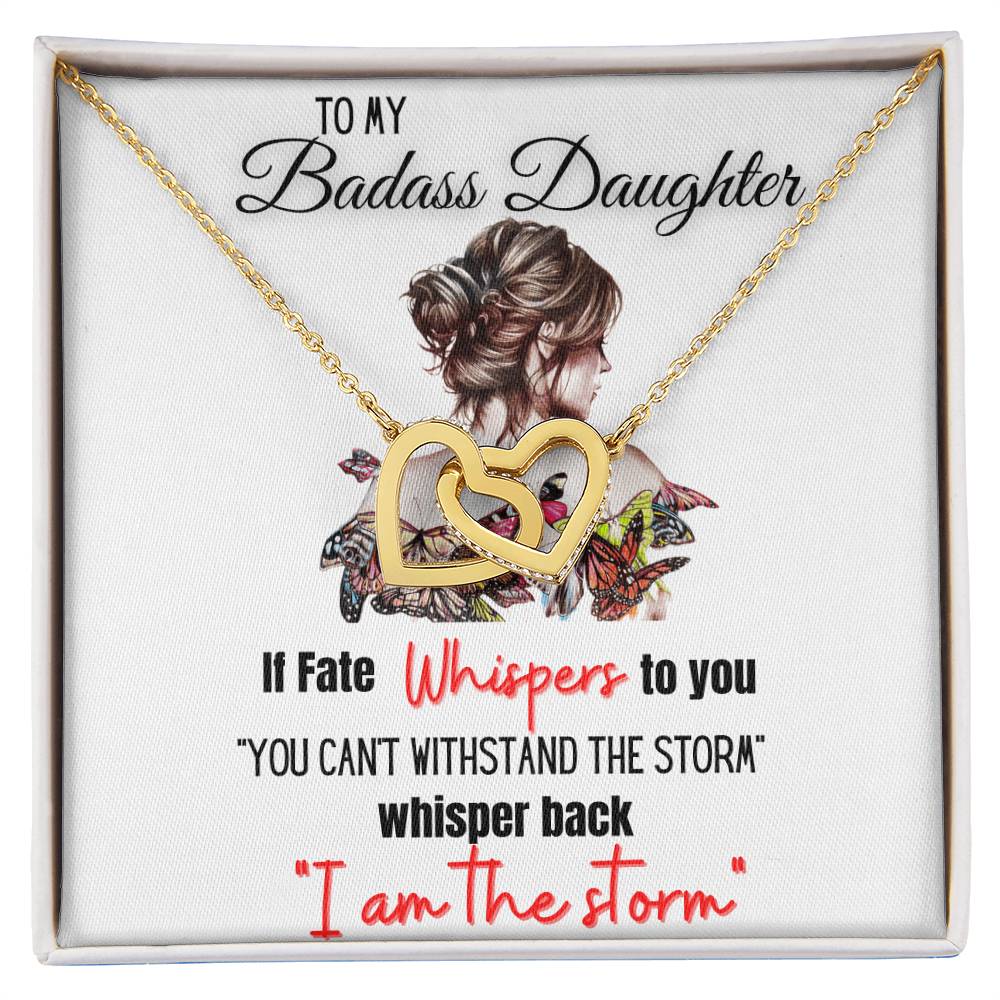 To My Badass Daughter If Fate Whispers To You Interlocking Hearts Necklace