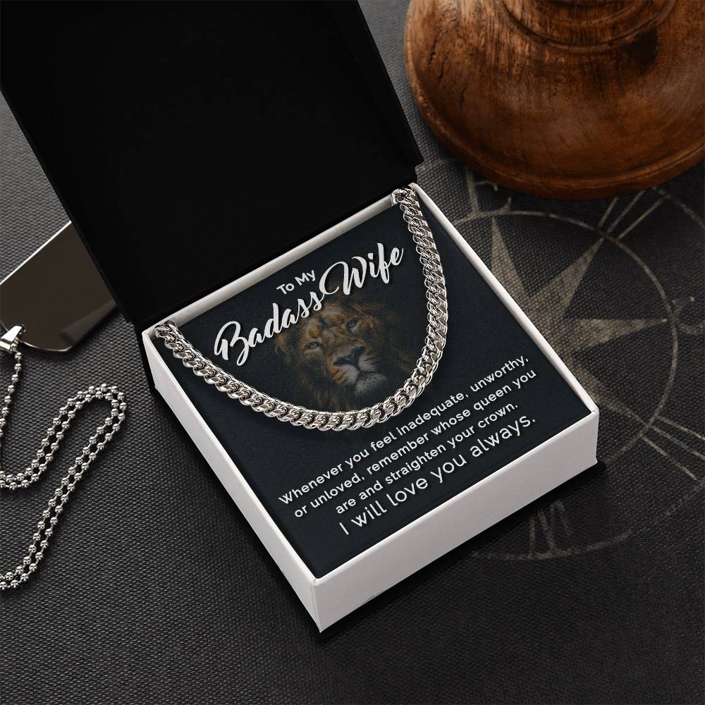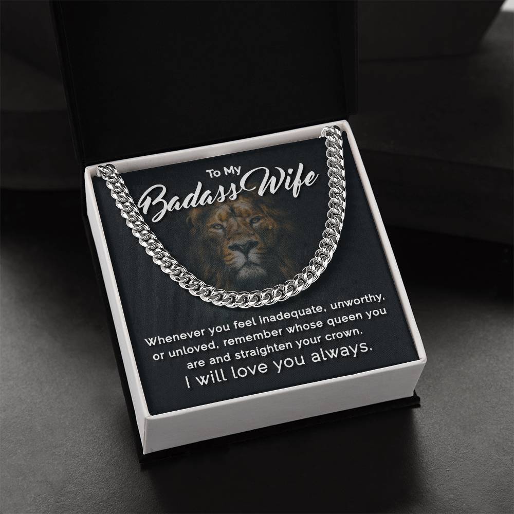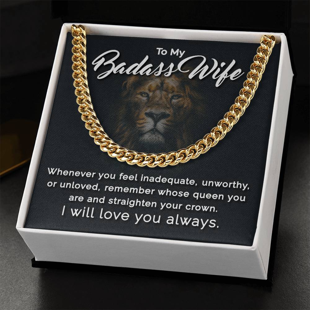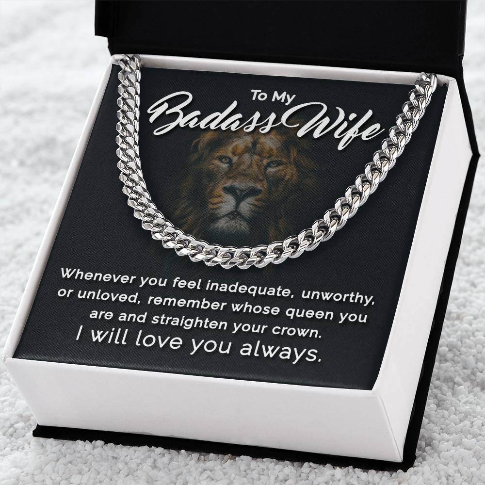To My Badass Wife - Remember Whose Queen You Are - Cuban Link Chain Necklace