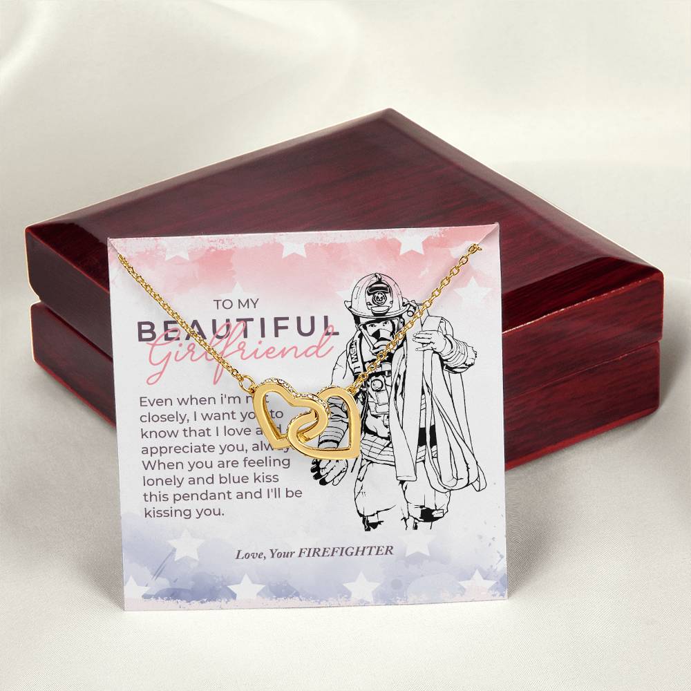 To My Beautiful Girlfriend From Firefighter Interlocking Hearts Necklace