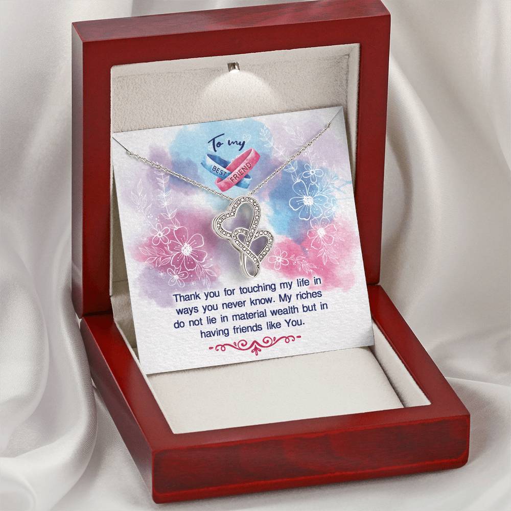 To My Best Friend 14K White Gold Double Hearts Necklace
