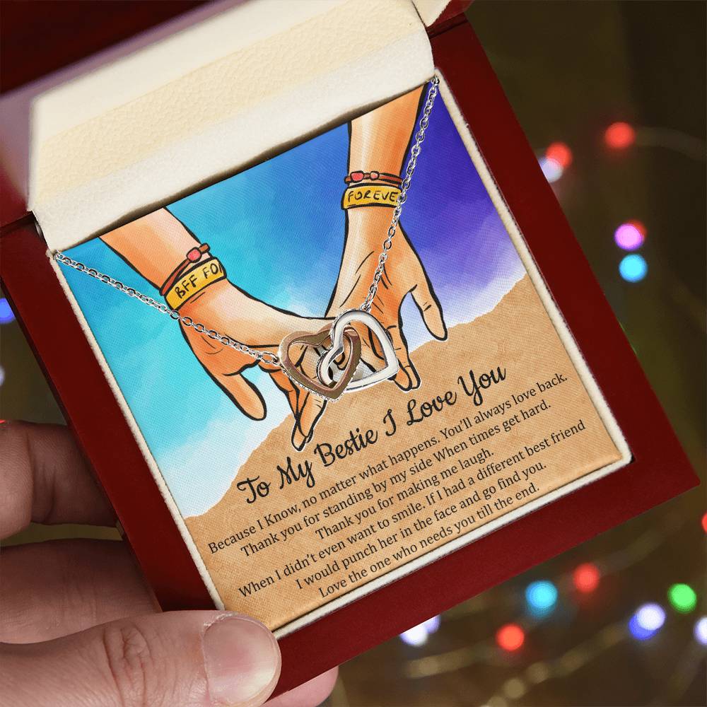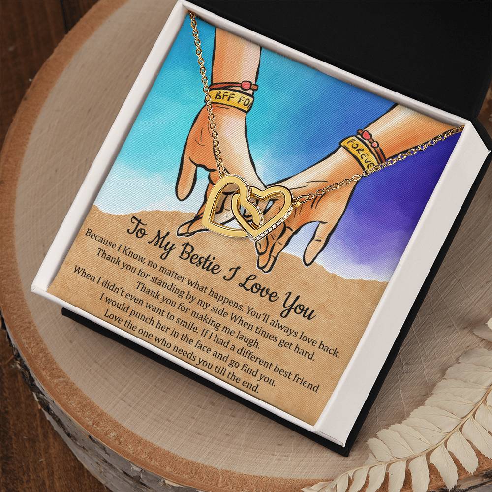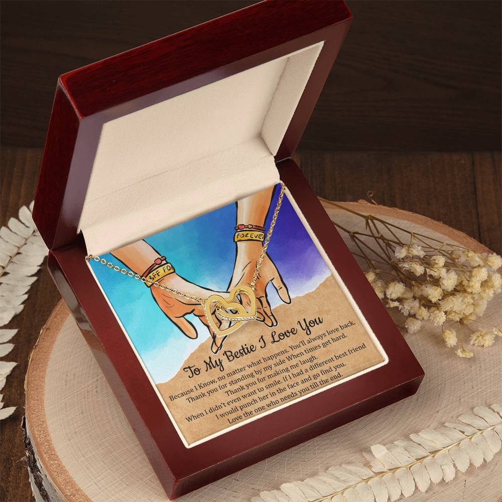 Give her the gift that symbolizes your never-ending love. Featuring two lovely hearts embellished with cubic zirconia crystals, this Interlocking Hearts necklace is the perfect accessory for everyday wear. Whether it's a memorable anniversary or a special birthday, make sure to dazzle your special someone by gifting them this stunning necklace.