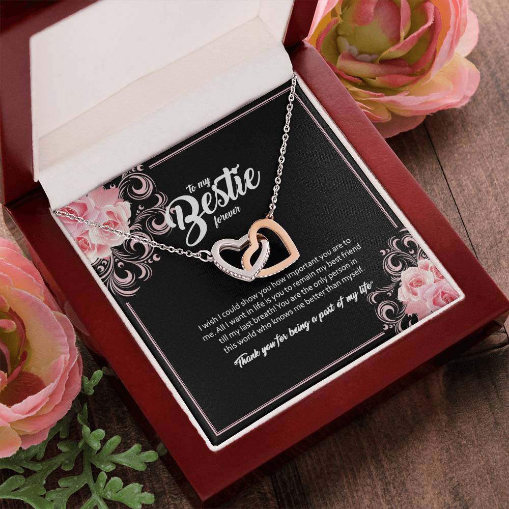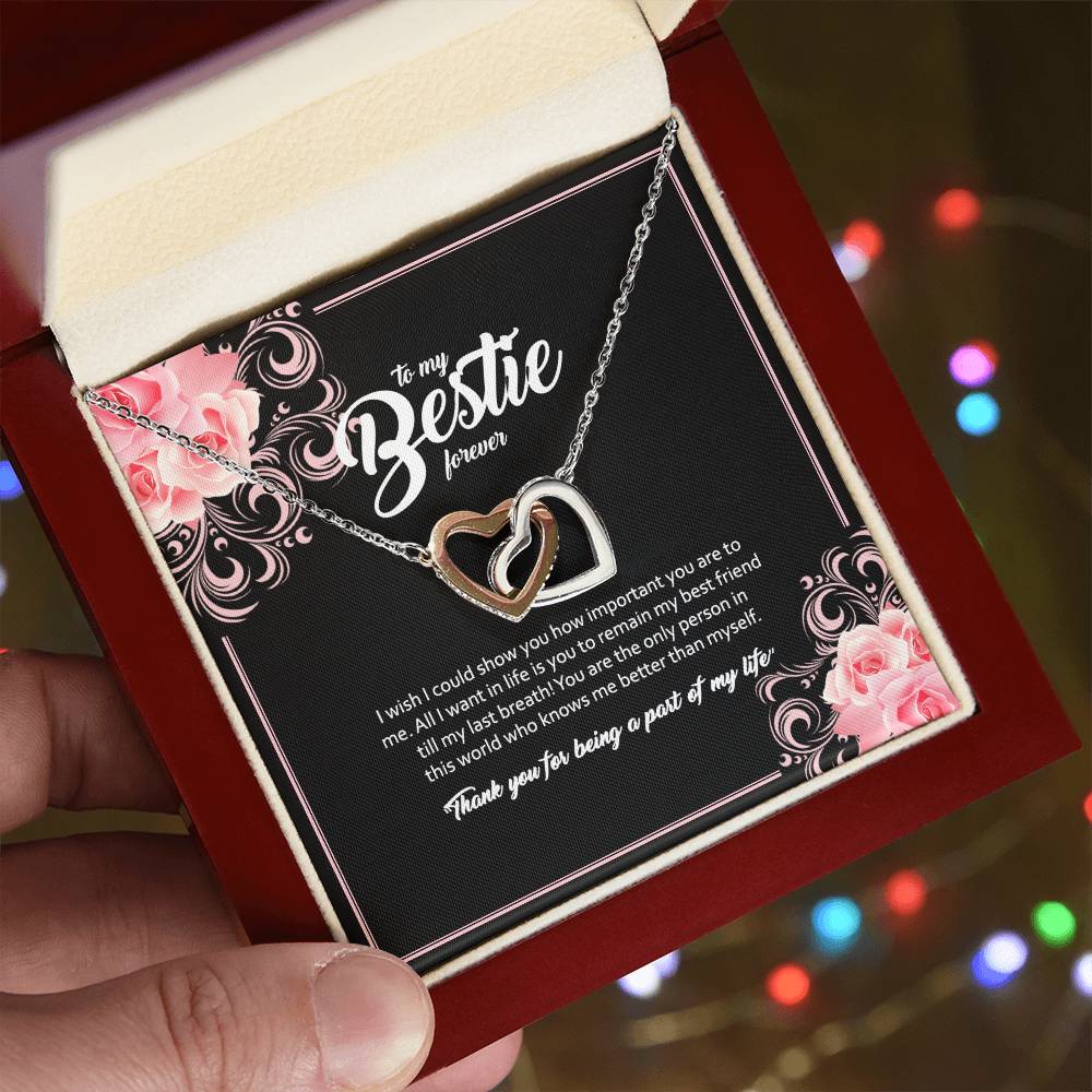 Give her the gift that symbolizes your never-ending love. Featuring two lovely hearts embellished with cubic zirconia crystals, this Interlocking Hearts necklace is the perfect accessory for everyday wear. Whether it's a memorable anniversary or a special birthday, make sure to dazzle your special someone by gifting them this stunning necklace.