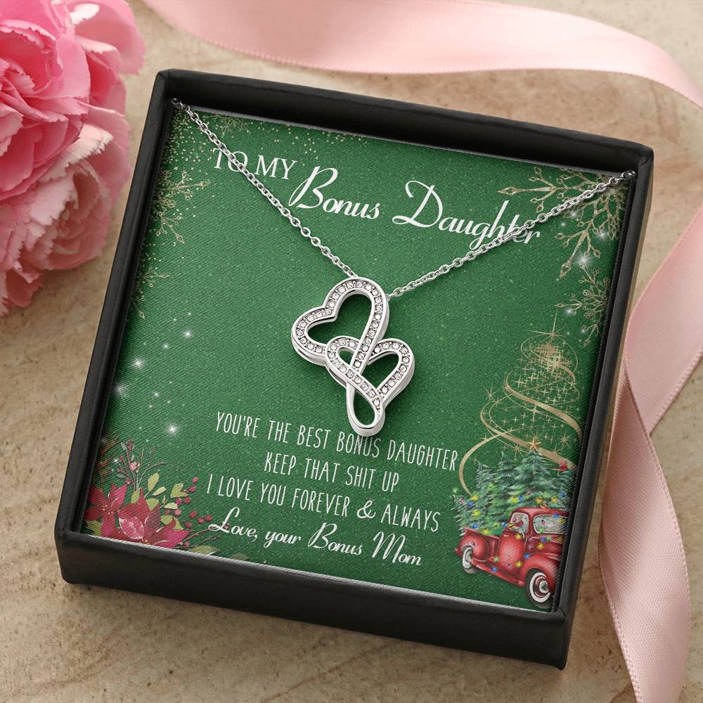 To My Bonus Daughter Forever Love Necklace Christmas Gift - Bonus Daughter Double Heart Necklace - Step Daughter Gift Double Hearts Necklace