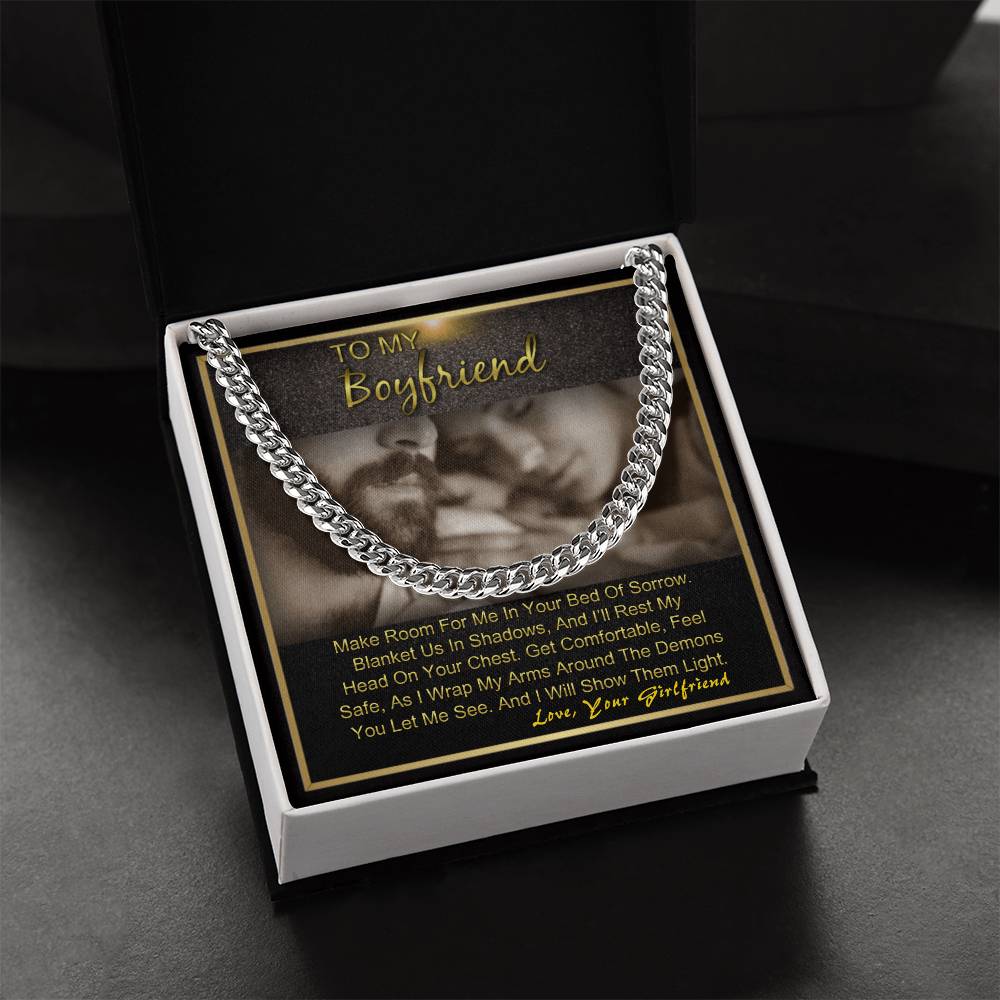 To My Boyfriend Anniversary Birthday Gift For Him Cuban Link Chain Necklace With Message Card