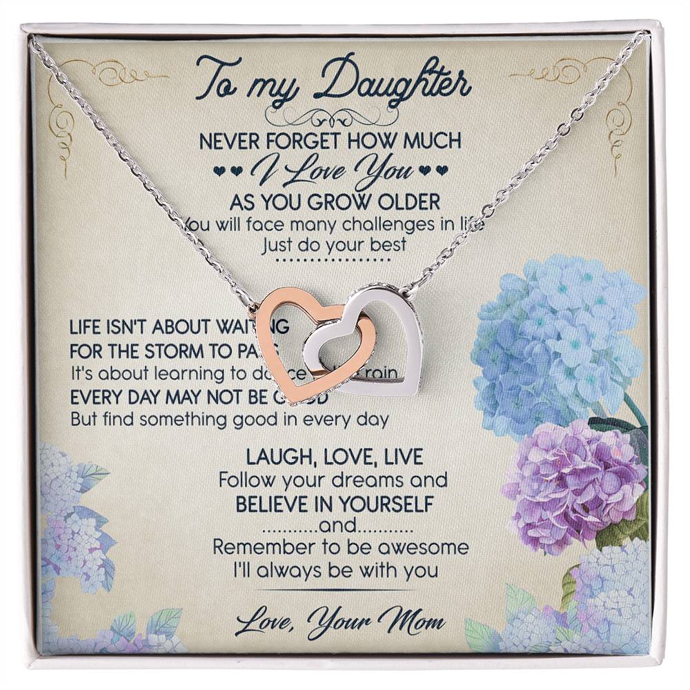 To My Daughter I Love You Interlocking Hearts Necklace Birthday Message Card