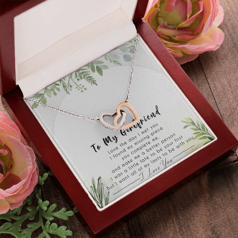 To My Girlfriend Interlocking Hearts Necklace Message Card