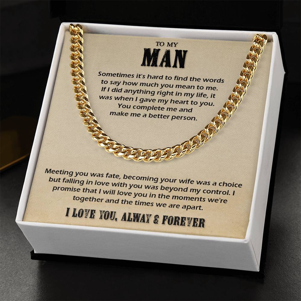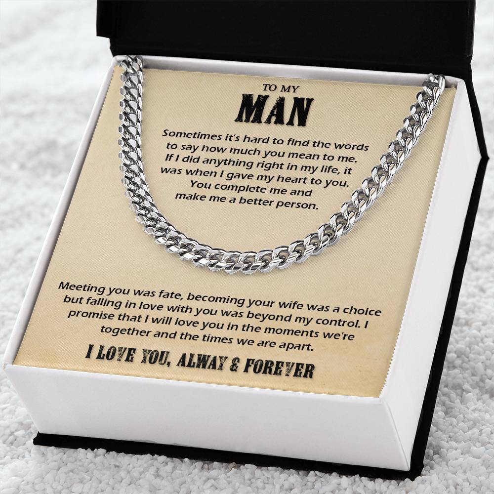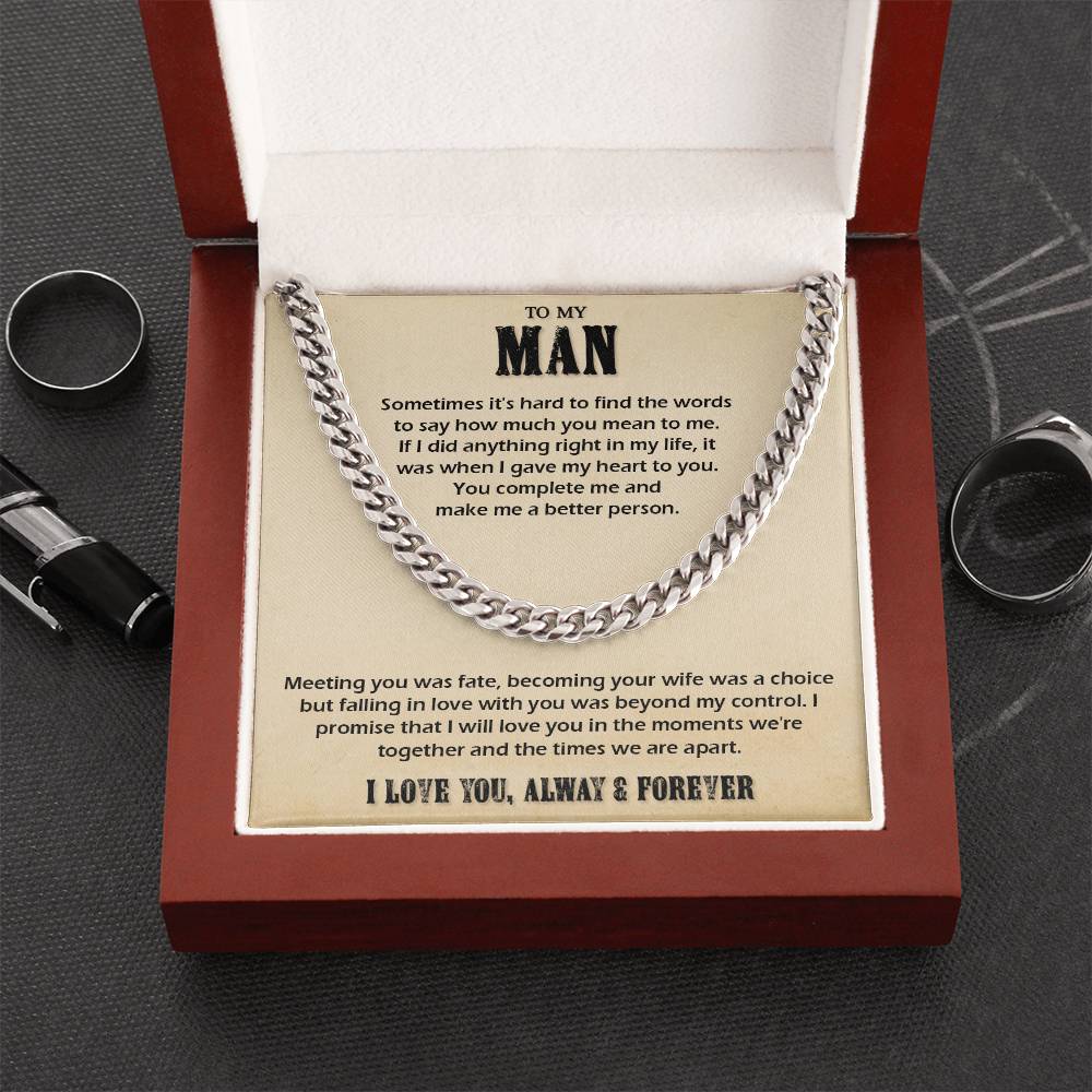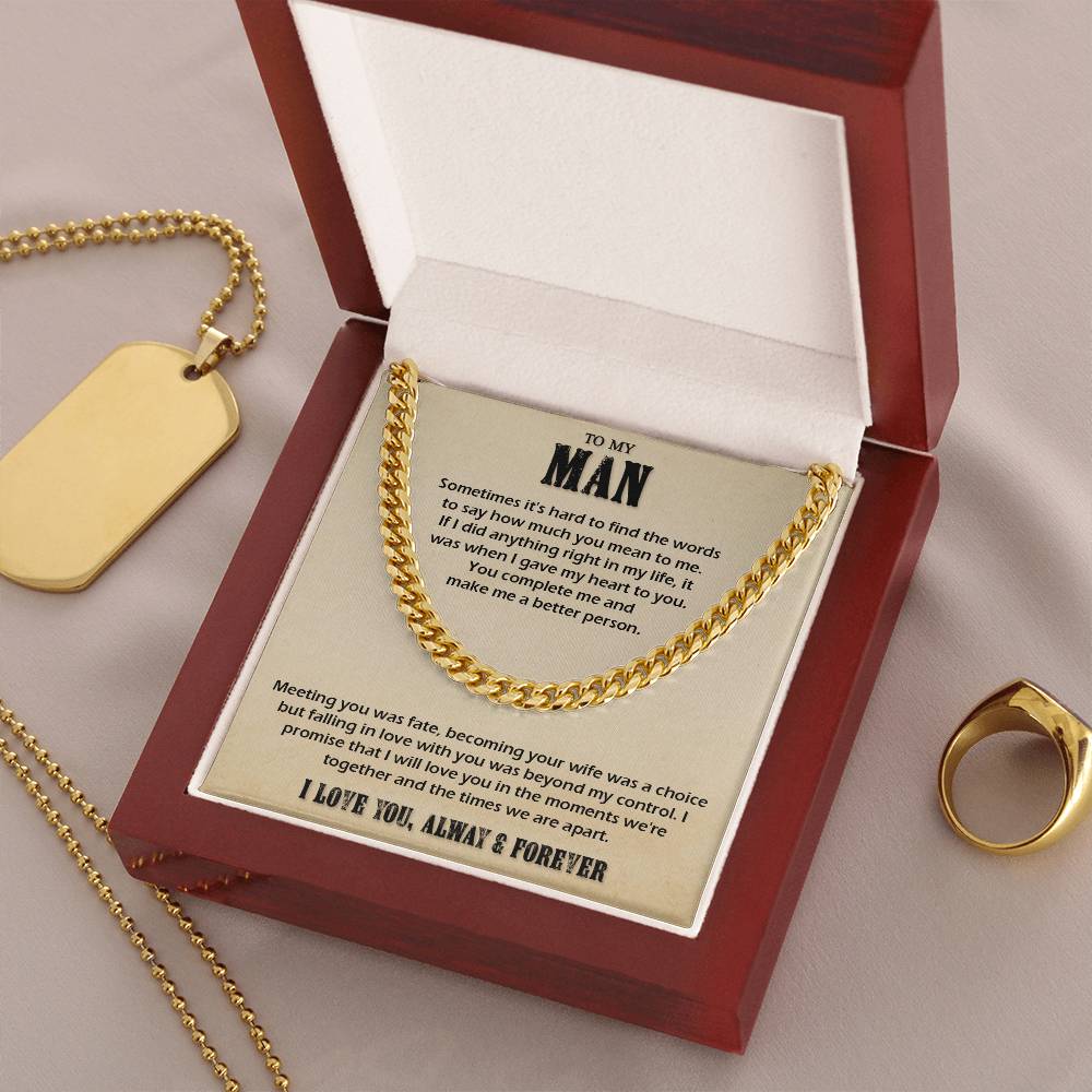 To My Man Cuban Chain Necklace Husband Necklace Gift For Husband From Wife Cuban Link Chain