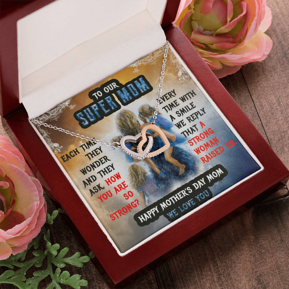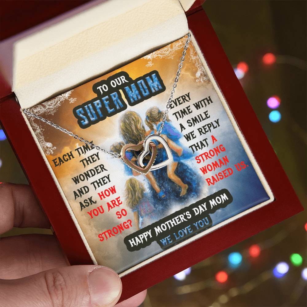 To Our Mom Super Mom Interlocking Hearts Necklace