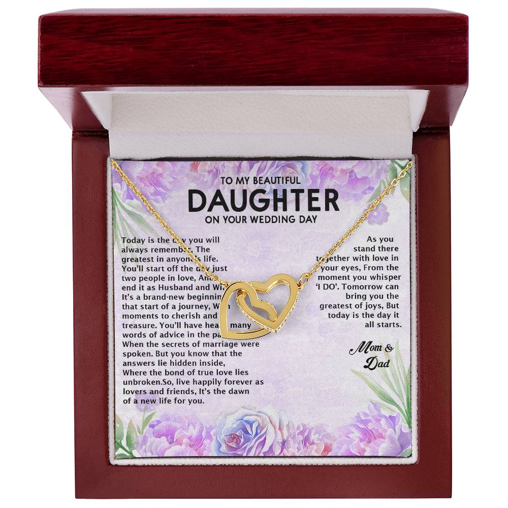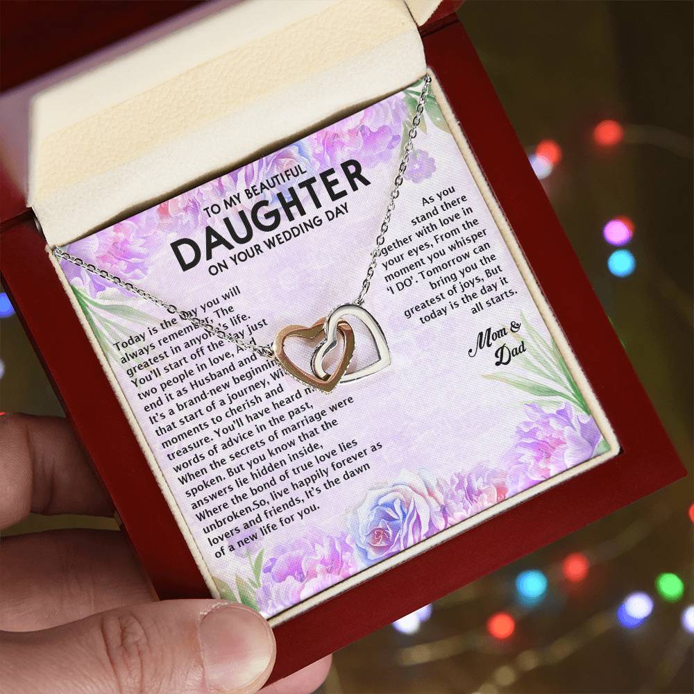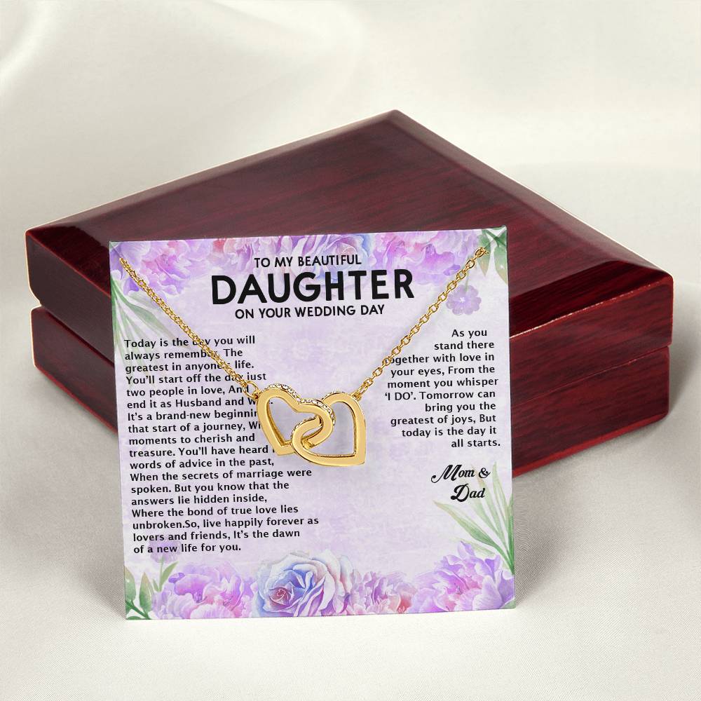 Wedding Day Gift - To My Beautiful Daughter Interlocking Hearts Necklace